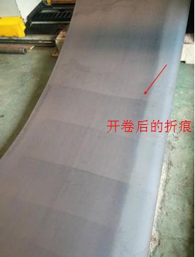 2、橫折缺陷與開卷矯直變形量有直接關系,是低碳鋼塑性彎曲超過臨界值發生的屈服效應。