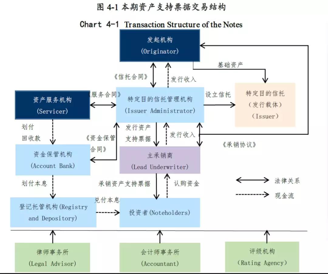 本期資產支持票據發行規模合計10億元,共分4檔發行,分別是7.5億元優先A級資產支持票據、1.5億元優先B級資產支持票據、0.5億元中間級資產支持票據和0.5億元次級資產支持票據。除次級檔證券外各檔資產支持票據均在全國銀行間債券市場公開發售,同時發起機構將持有各檔資產支持票據發行規模的5%。