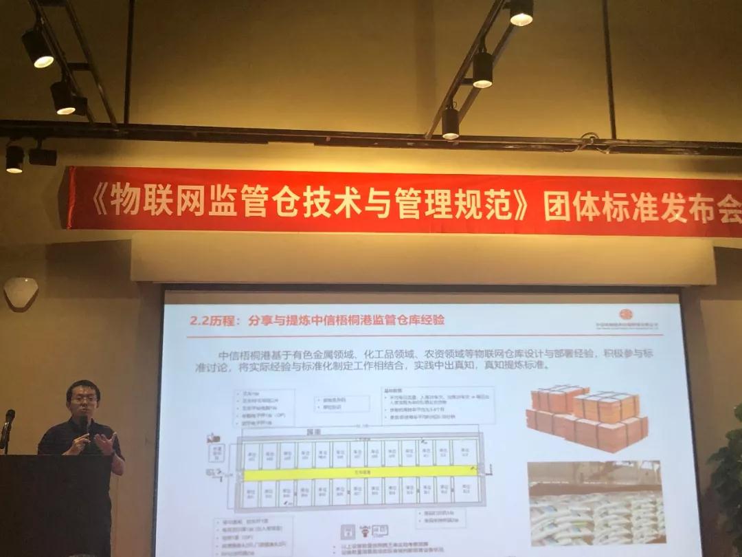 會議還安排了企業專題分享環節,中信梧桐港供應鏈管理有限公司物流部總經理蘇磊以“大宗物資監管倉標準化之路”為主題,通過積極參與標準研究與討論,并結合企業實際運營與管理,將實踐與標準制定工作相結合,嚴格依照標準執行、改造,以實現物聯網監管倉信息化管理水平和能力的大幅提升。